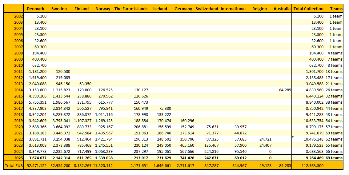 Rynkeby Foods was the main sponsor of the ride, but there were also other companies that supported it. In fact, the participants were so good at raising sponsorship that there was a surplus of 5,100 euros when the participants returned home. The proceeds were donated to the paediatric cancer ward at Odense University Hospital, and so a tradition was born.